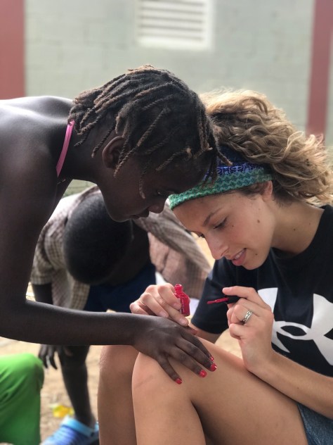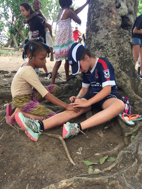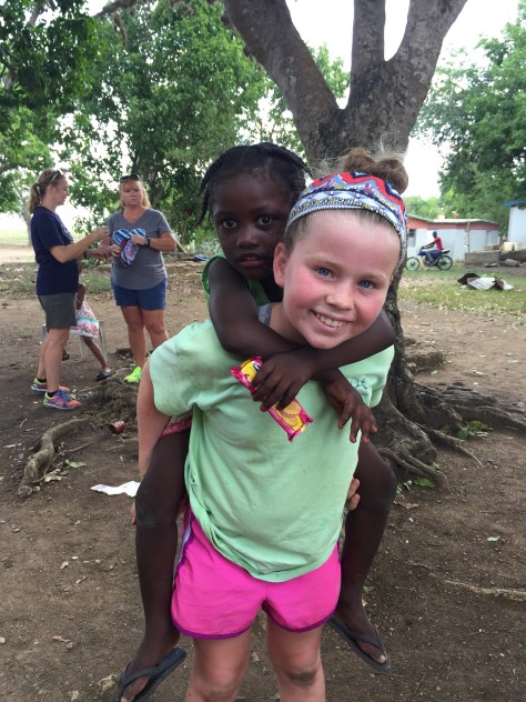 This afternoon we went to Bataya Campina to do VBS. We walked through the village to round up kids to join us in the little church. We sang, heard a lesson in Spanish and colored a picture with them before heading out to play. It was SO HOT in that little church. We were all dripping sweat as we listened to our leaders. After VBS was over we went outside to play. We brought bubbles, balls, jump ropes, nail polish and our our own backs for piggyback rides. It was a lot of fun.